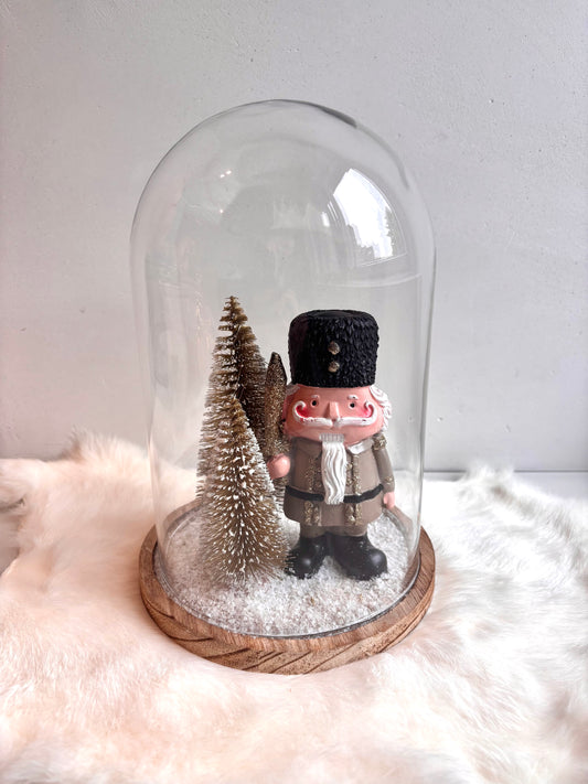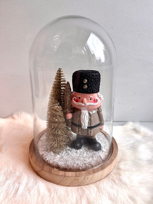 Middelgrote stolp met gouden kerstbomen en notenkraker