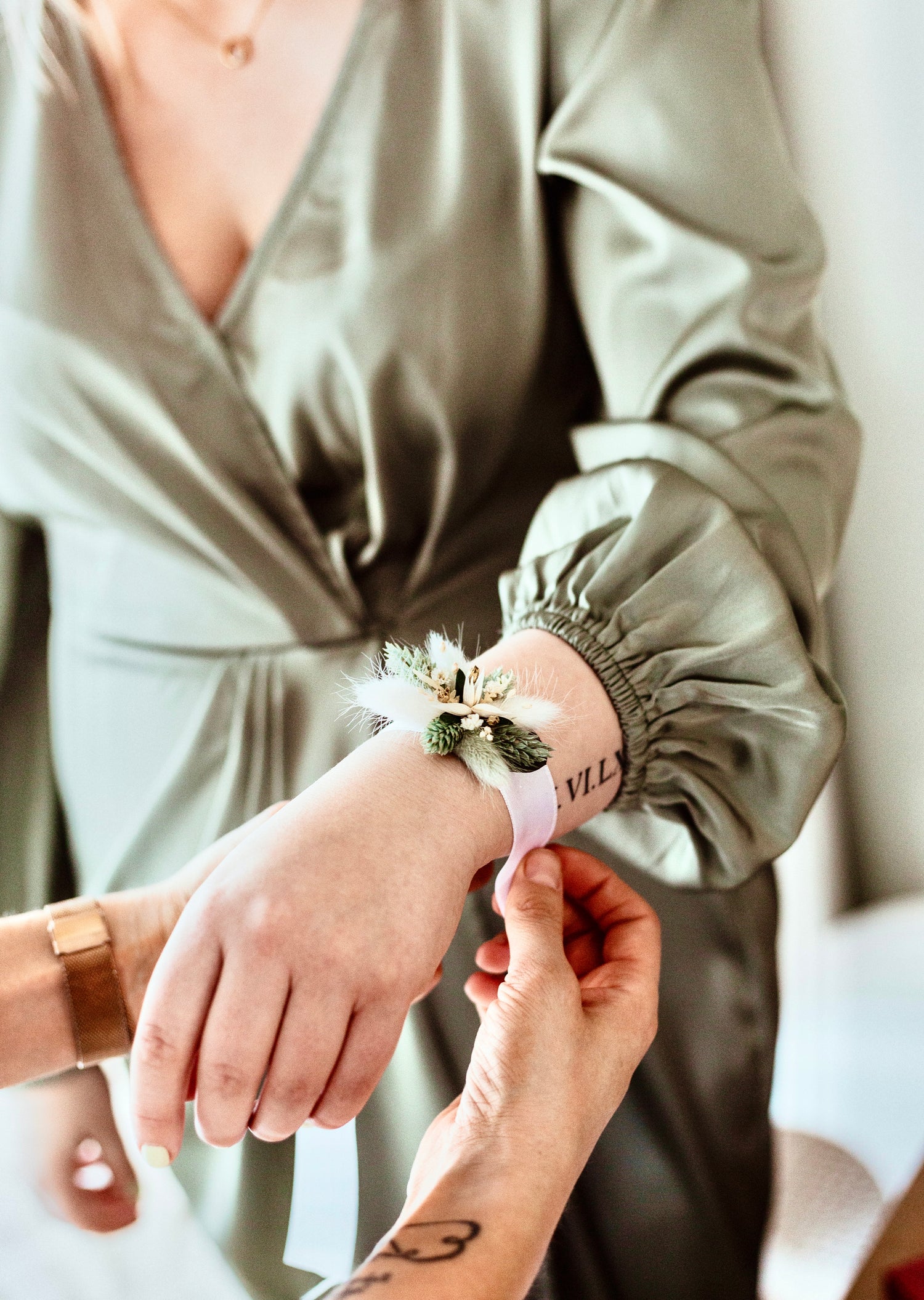 - Corsages of kleine bloemstukken voor bruidsmeisjes en getuigen